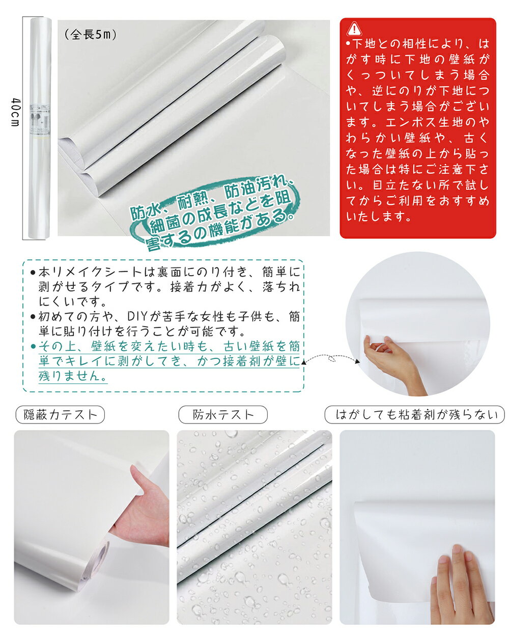 ※万が一、施工後にはがれてしまった、もしくは下地の壁紙を傷付けてしまったなどの場合は返金・交換の保証は致しかねますので、あらかじめご了承ください。