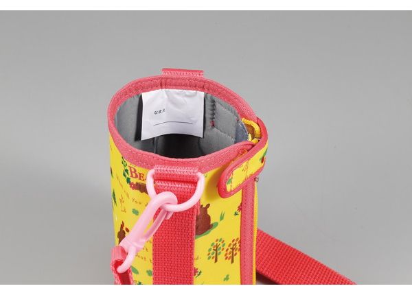 ホットはコップで!肩掛けベルトの付いたカバー付き。