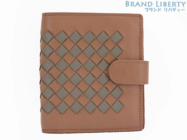 【美品】ボッテガ ヴェネタ BOTTEGA VENETA イントレチャート チェッカー ナッパ 二つ折り財布 コンパクト財布 ピンクベージュ ラムレザー 121059 【中古】