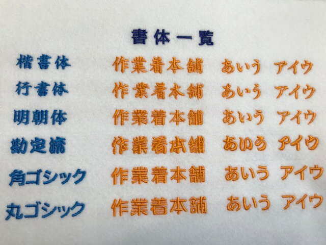 当店でお買い上げの作業着に「刺繍加工のサービス」を承っております。文字の大きさ、書体、糸のカラー、会社のマーク等、金額が異なりますが、対応は可能です。※後払い決済にての刺繍加工は承っておりません(コンビニ前払い・クレジットカード決済方法のみ可)。