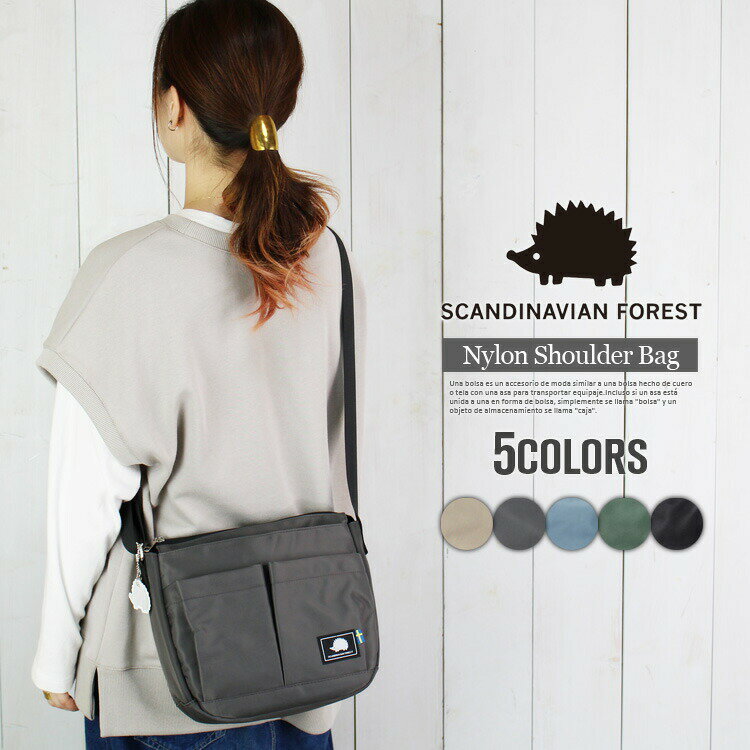 [スカンジナビアンフォレスト] ショルダーバッグ レディース 251-AGXP119 ブラック ・ネイビー ・ベージュ ・Mグリーン 908856 908863 908870 908887 ナイロン 普段使い ハリネズミ 鞄 BEIGE ONESIZE