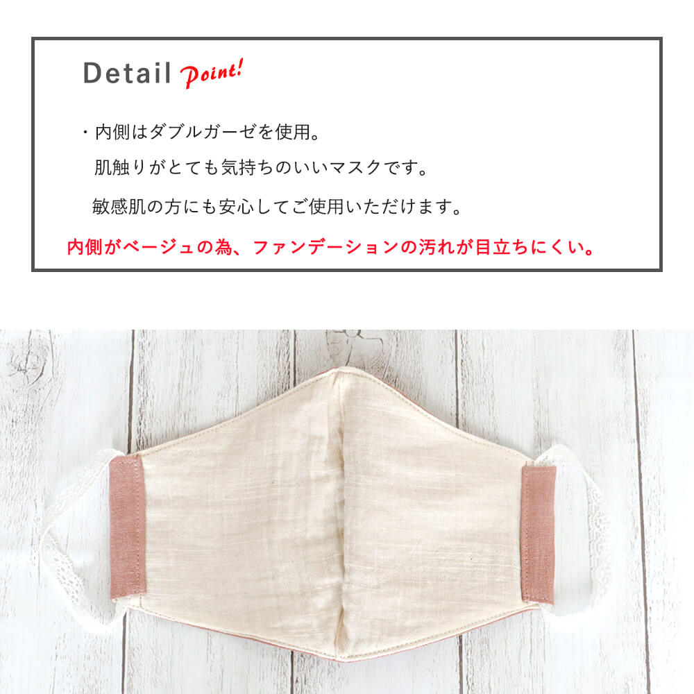 マスク 洗える 布マスク 大人マスク 大きめ立体 立体 母の日ギフト リネン ピンク ゴムレース 洗える 日本製 送料無料 メール便2ポイント 母の日