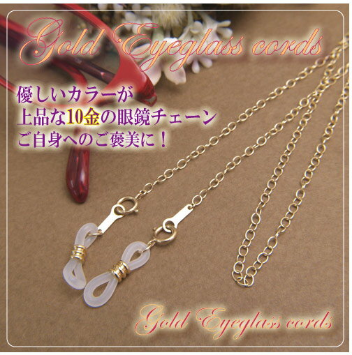 ギフト対応 セレブなK10ゴールドのシンプル眼鏡チェーンです。