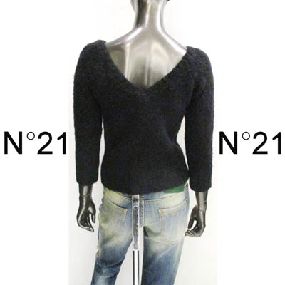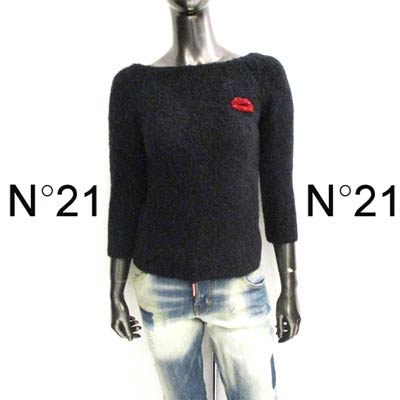 ヌメロヴェントゥーノ N°21 レディース トップス ニット セーター ロゴ アルパカ混・ボートネック/袖口七分丈・スパンコールリップロゴ付七分丈ニット ブラック 21IN2M0A022 7125 9000 (R59400) 122 2021年秋冬新作【送料無料】 【smtb-TK】