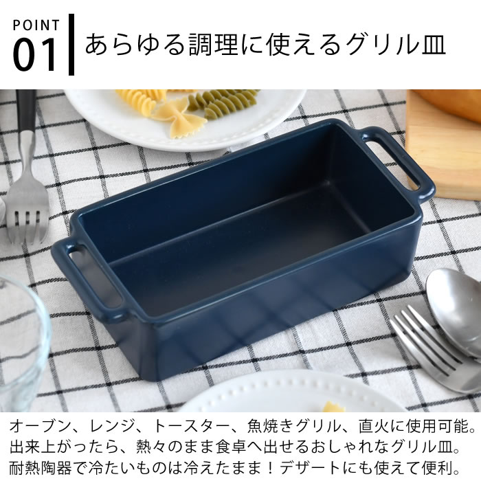 オーブン、レンジ、トースター、魚焼きグリル、直火に使用可能な便利なお皿! 出来上がったらそのまま食卓へ♪