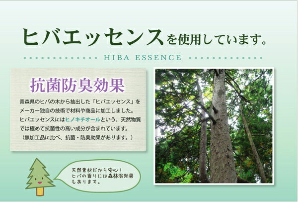 青森県のヒバの木から抽出した「ヒバエッセンス」をメーカー独自の技術で側生地に加工しました。