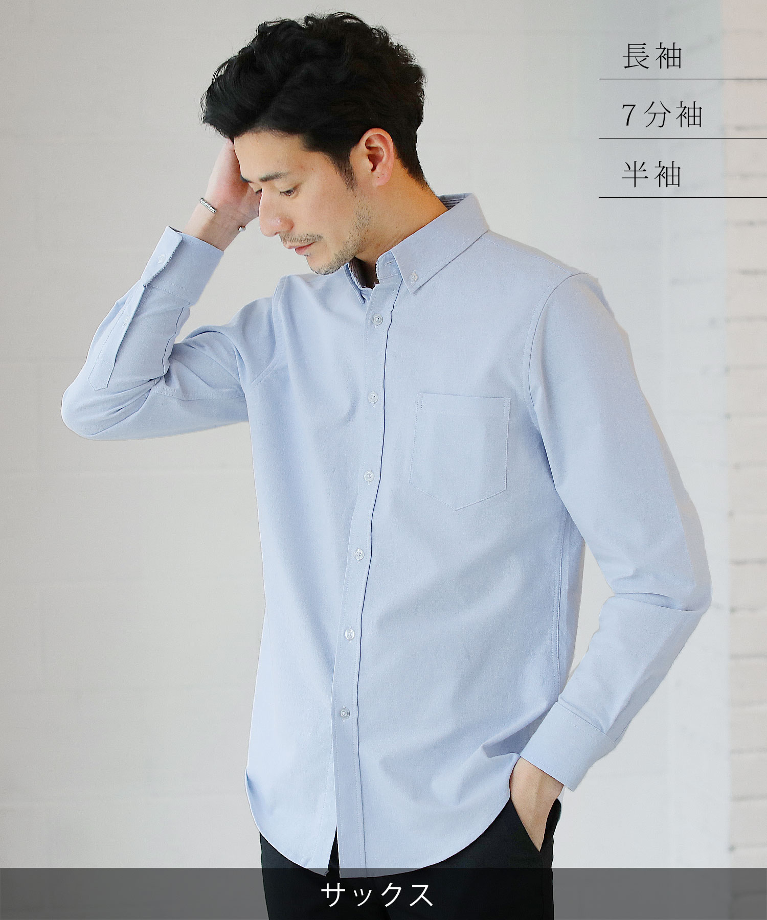 【3点目無料】 シャツ メンズ ストレッチ カジュアルシャツ オックスフォードシャツ 長袖 七分袖 7分袖 半袖 秋 冬 秋服 冬服 スリム ボタンダウンシャツ オールシーズン ホワイト ブルー サックス ピンク ワイン ベージュ カーキ ネイビー