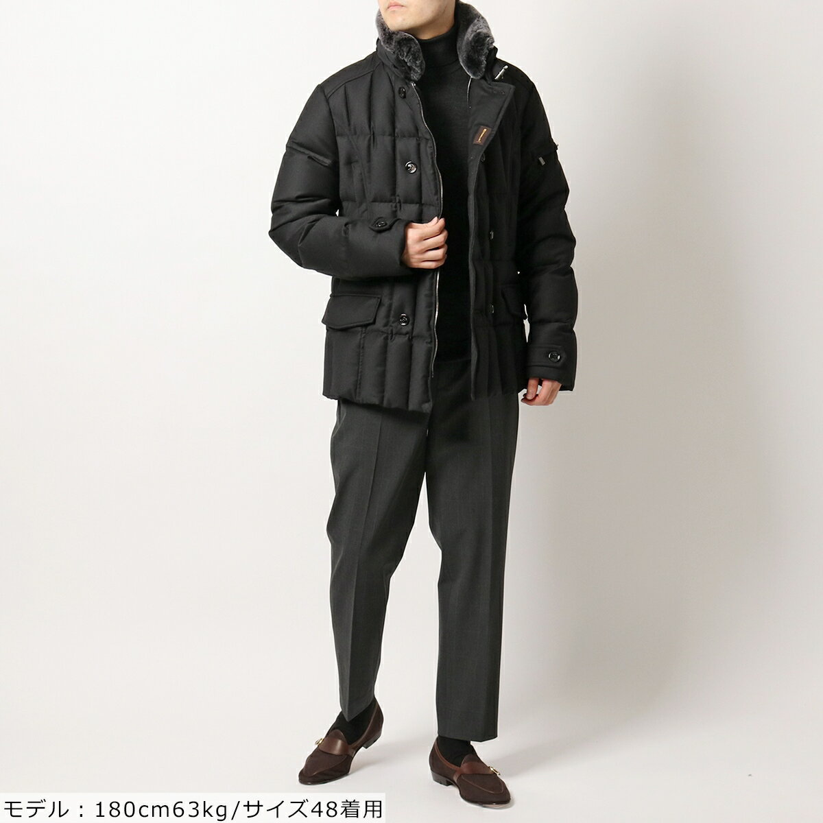 MOORER ムーレー ダウンジャケット SIRO L シロ メンズ ラビットファー付き ベルトハイネック カシミヤ ウール ダブルブレスト ダウンコート ブルゾン NERO
